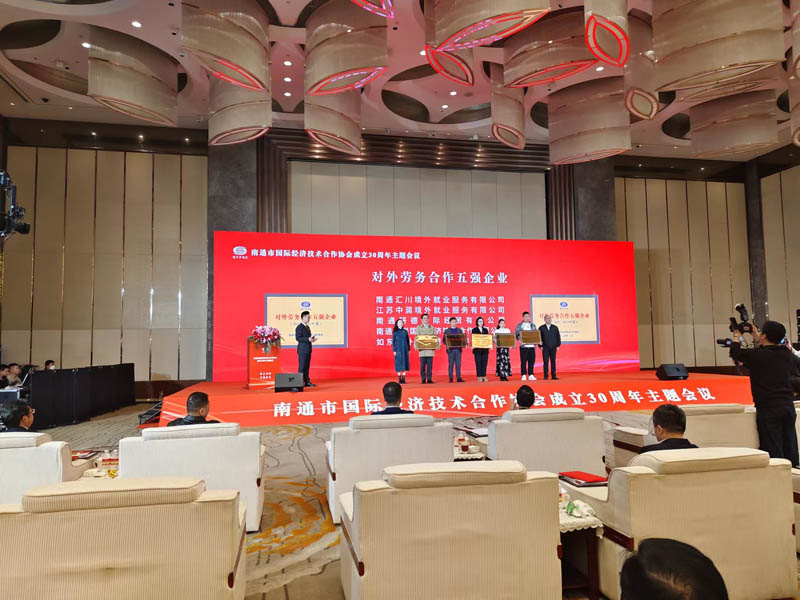 南通市國際經濟技術合作協會成立30周年主題會議,如東海外經濟技術合作有限公司榮獲對外勞務五強企業稱號。